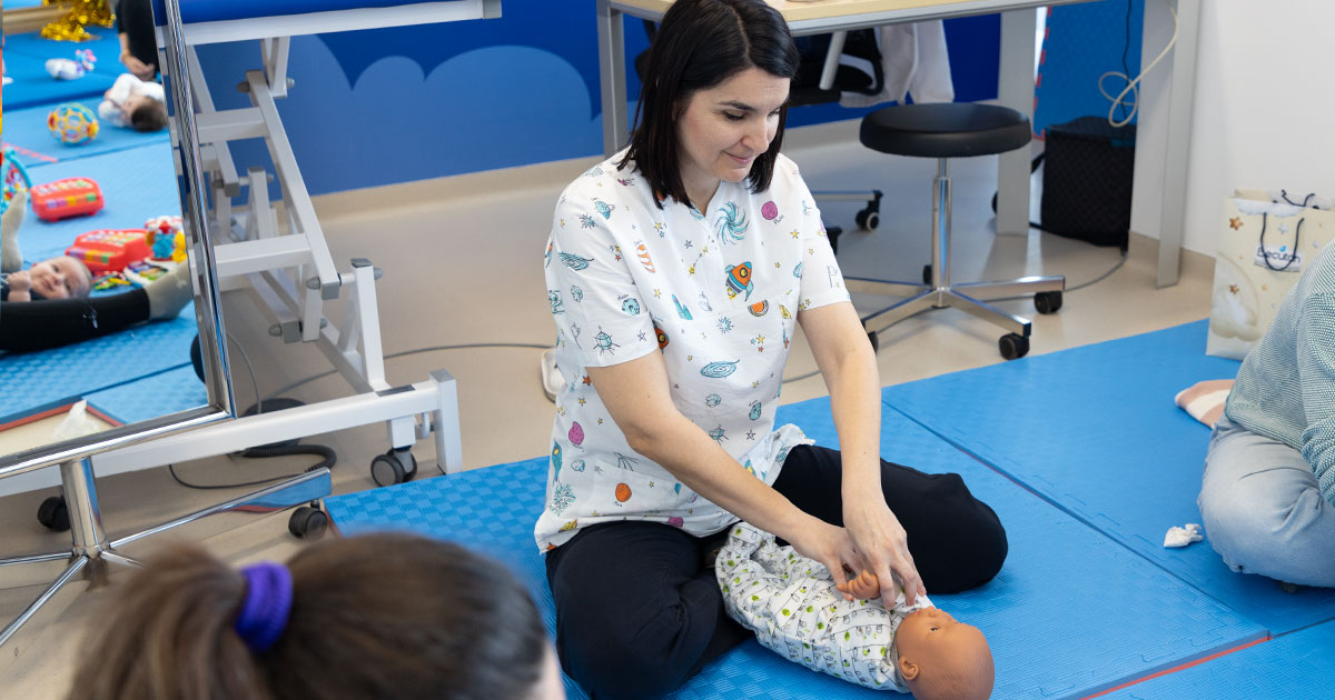 Gjimnastika udhëhiqet nga Dijana Marinovska, magjistre e terapisë fizikale në pediatri, e cila me qasje profesionale dhe përkushtim i udhëzon prindërit dhe bebat në çdo orë, duke krijuar ndjenjë sigurie dhe besimi..jpg)
